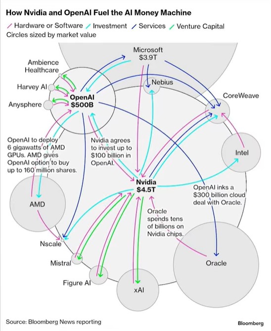 The spending returns to Nvidia, effectively creating a self-reinforcing capital loop between investor and supplier.